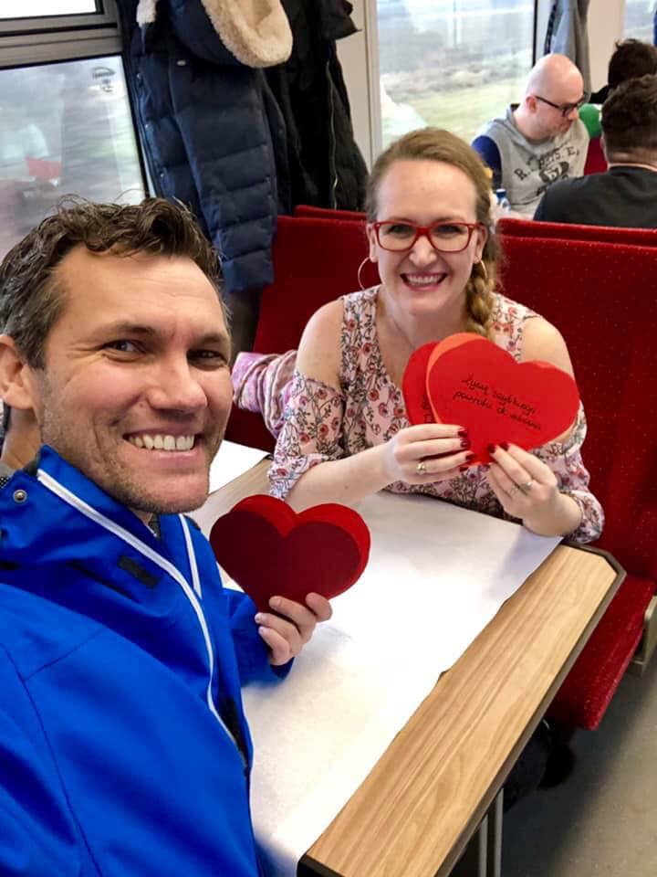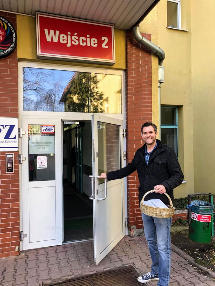 Brooke i Richard zabrali koszyk kartek aby dostarczyć je dzieciom przebywającym w gnieźnieńskim szpitalu